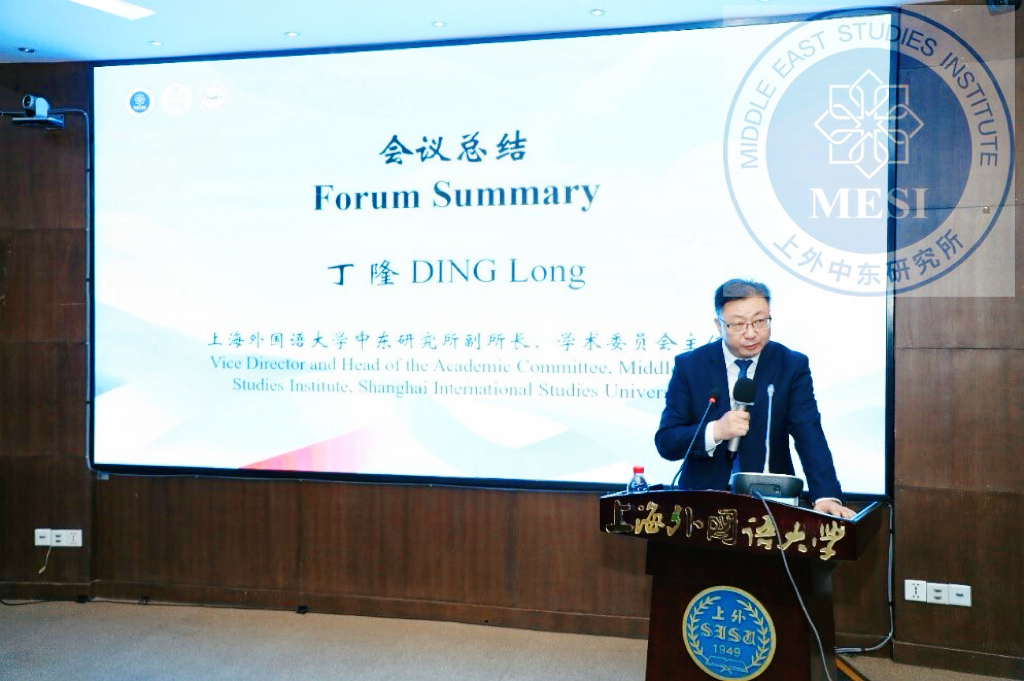 Taylor & Francis 出版集团期刊出版人任晴结合国际期刊的发表与传播对论坛作了高度评价。上海外国语大学中东研究所副所长丁隆教授对论坛作了总结,认为本届论坛体现出令人鼓舞的新趋势,如对发展议题的关注使得中东研究超越了传统安全议题,尤其是青年学者带来的研究视角和方法论创新为中东研究注入了新动能。