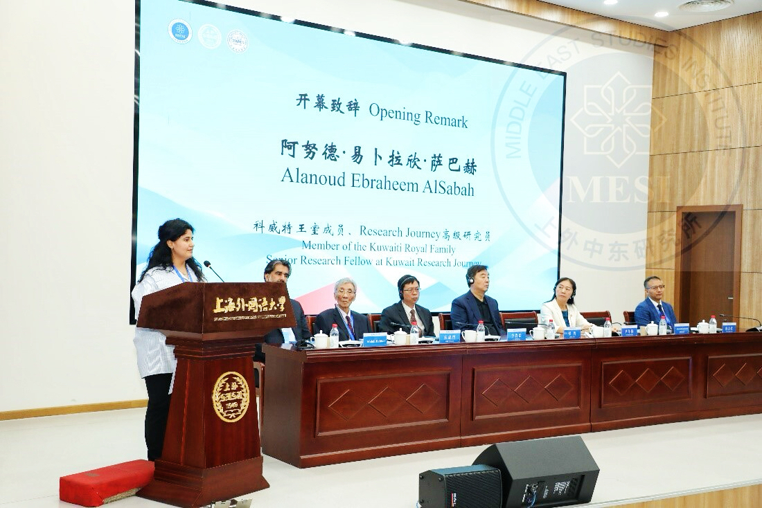 首场主旨发言由上海外国语大学科研处处长潘鸣威主持,6位中外专家先后发言,聚焦中东地区格局与秩序变化深入研讨。