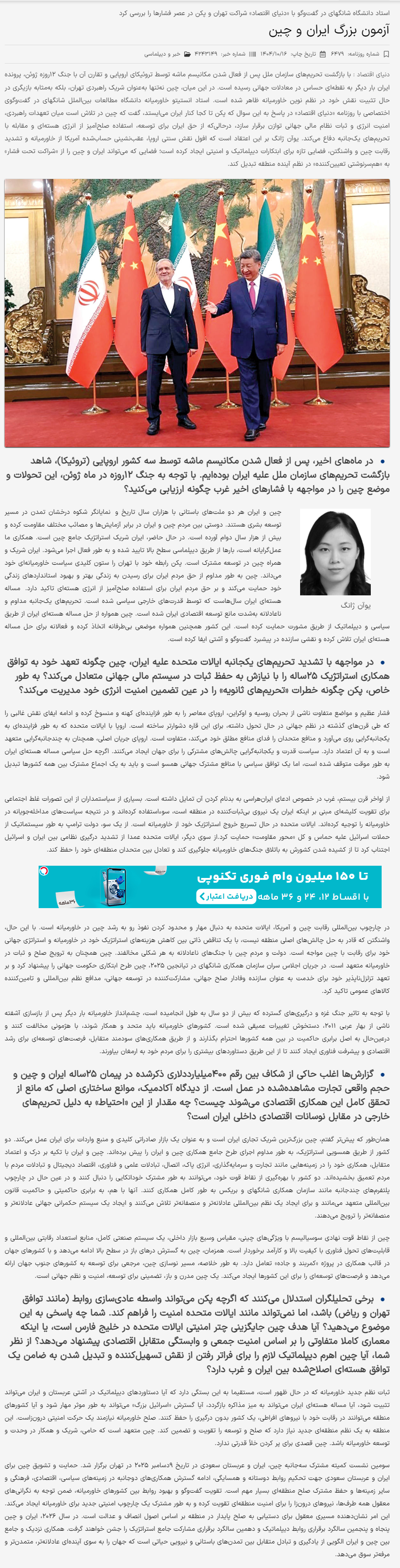 2026年1月6日,上外中东研究所章远研究员就伊朗核问题外部制裁的新变化等问题接受伊朗报纸Donya-e-Eqtesad专访,全文如下: